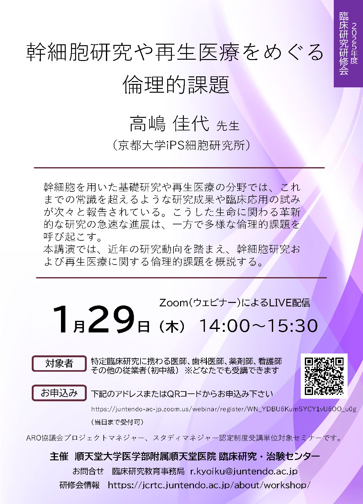 順天堂大学『幹細胞研究や再生医療をめぐる倫理的課題』