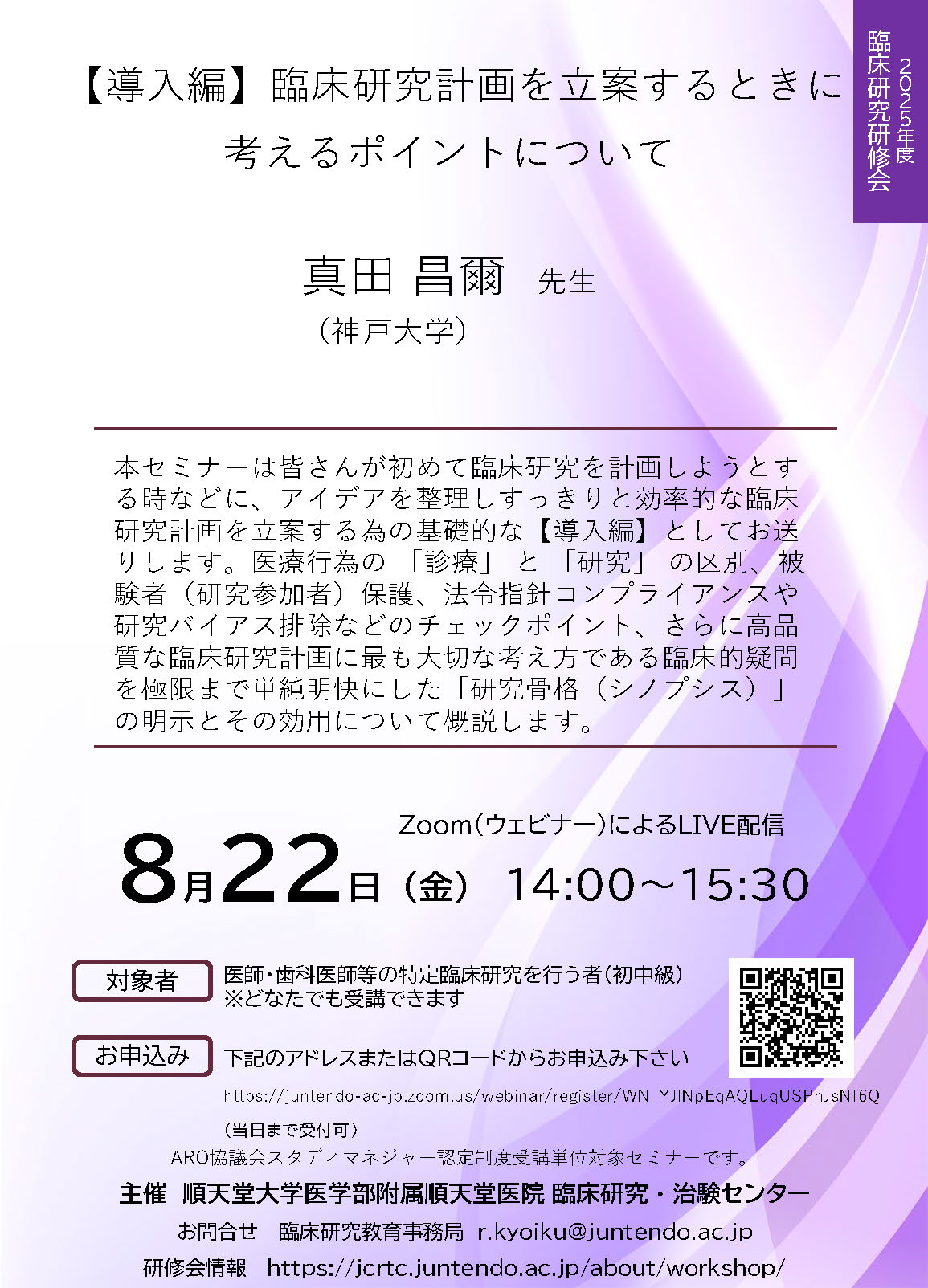 順天堂大学医学部附属順天堂医院『【導入編】臨床研究計画を立案するときに考えるポイントについて』